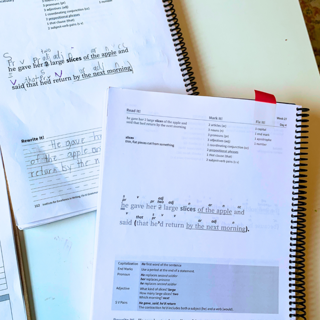 I love using Fix it Grammar because the lessons are short and she can do them independently. It’s also nice because it’s not one mastered skill at a time. She really has to know and remember each part of speech she learns because it may or may not come up in any sentence that she edits.