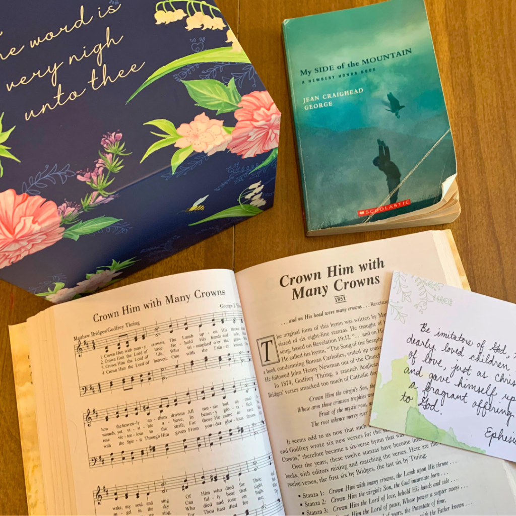 I choose one hymn a month from a book called “Then Sings My Soul”. I grew up with traditional hymns in church, so I just choose one that I can remember the tune. Eventually, I’ll probably end up having to look them up on YouTube or something.