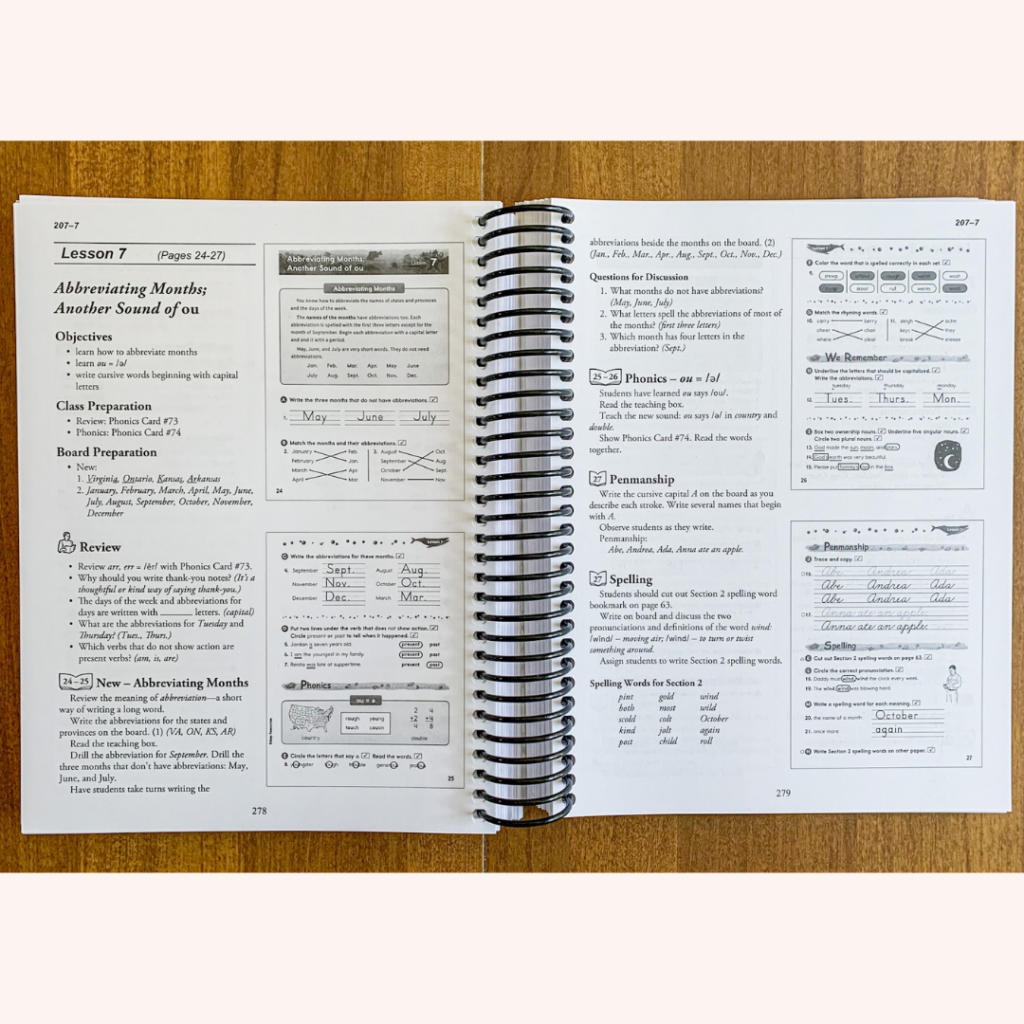TEACHER’S MANUAL: The Teacher’s Manual is bound in a hardcover. Almost every spiral book I have ends up coming apart in some way, and this one has no spiral. It makes me happy knowing it will last through the years!